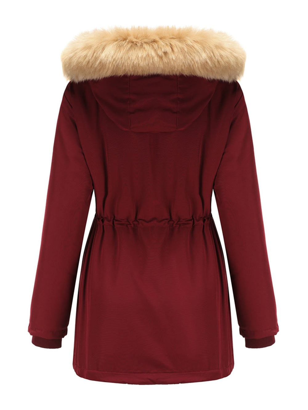 Faux Fur Hooded Winter Coat with Adjustable Waist and Front Closure